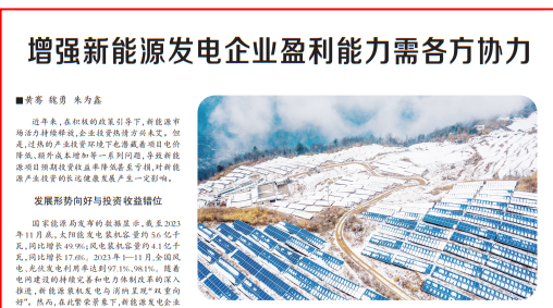 《中國能源報》:增強(qiáng)新能源發(fā)電企業(yè)盈利能力需各方協(xié)力