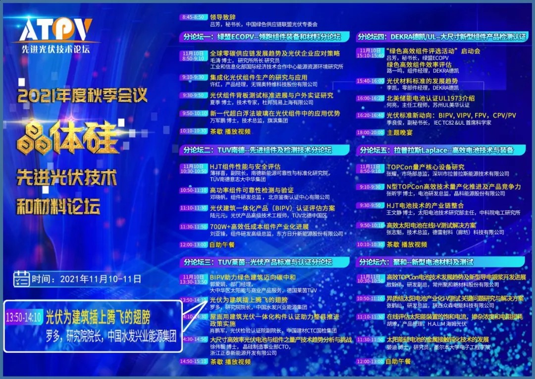 11月11日,由中國綠色供應鏈聯(lián)盟光伏專委會(ECOPV)指導的2021年度“晶體硅先進光伏技術和材料論壇(ATPV)”秋季會議在無錫落幕。